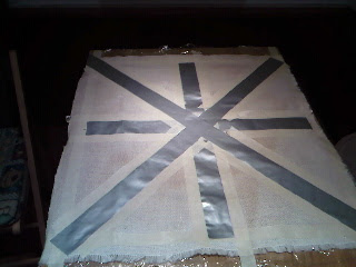 Marcamos con cinta la cruz del centro de la bandera y otra transversal para que queden marcados los triángulos.