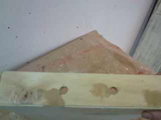 Después de quitar las grapas,encolé y clavé la base,hice los agüeros para las asas,un poco de emplaste y lija...le di una mano de marrón y otra de color lavanda...