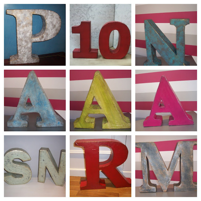 Hoy os traigo una pequeña muestra del trabajo que he estado preparando últimamente en el taller,la familia de letras decorativas va creciendo poco a poco y quiero compartir con vosotros un poco de ella,espero que os gusten...la palabra "Afortunado" junto con el número 2013,es un encargo para una