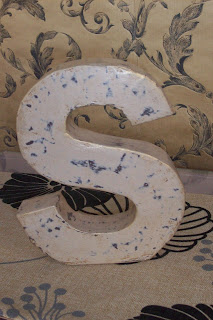 ...y la "P" mide 35cm,está pintada imitando a metal blanco y al natural era muy chula...