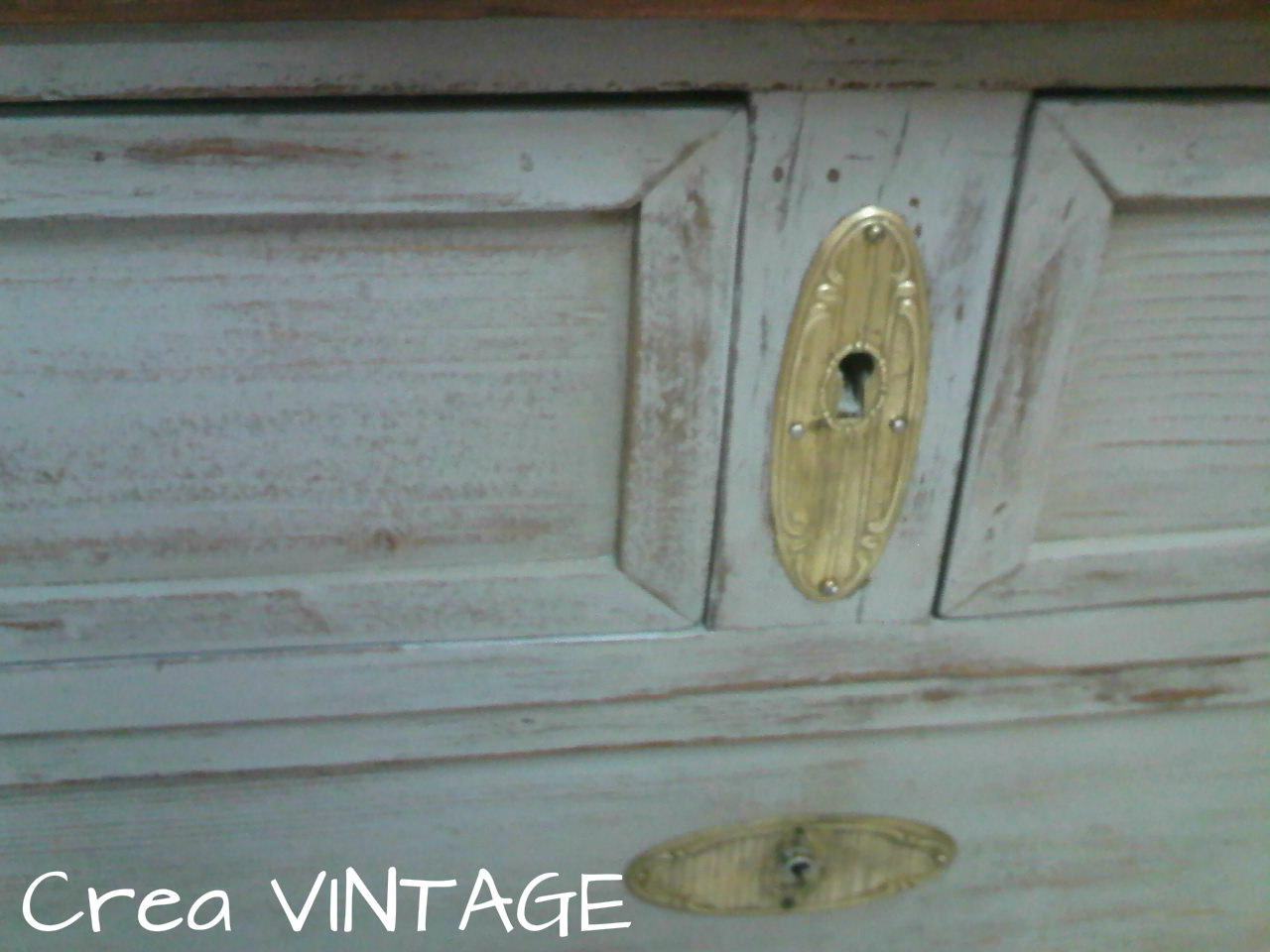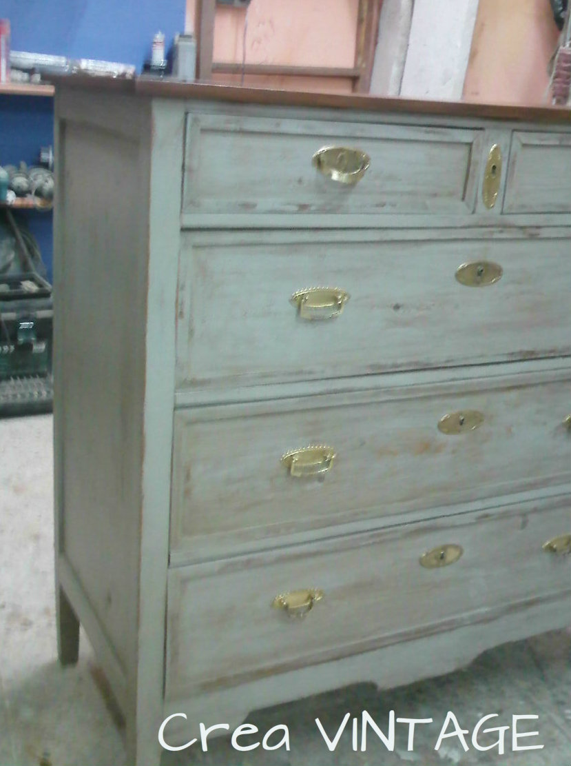 ...hecho esto se lijó bien toda la madera y se trató contra xilófagos y carcoma, ¡por si las moscas! y por último hicimos un decapado en un gris al que añadimos unas gotas de ocre para que el color fuera un poco más cálido,se tiñó la tapa , se barnizó y por último se pulieron los tiradores...¡y este es el resultado...
