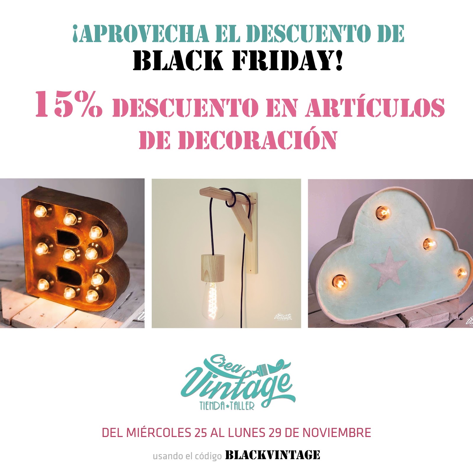 Este año, nuestra Tienda on-line se une al movimiento Black Friday, y hasta el lunes 29 de Diciembre podéis conseguir en nuestros productos de decoración un 15% de descuento utilizando en la compra el código BLACKVINTAGE.