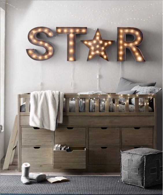Las letras decorativas con Luz son elementos de gran fuerza decorativa, que crean espacios románticos y evocadores, muy adecuados para habitaciones infantiles.