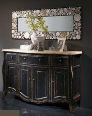 ¡PRECIOSA! con un toque un tanto "asiático", la tapa decapada en negro y las patas lacadas en rojo con una pátina negra.....NO ES MALA IDEA......
