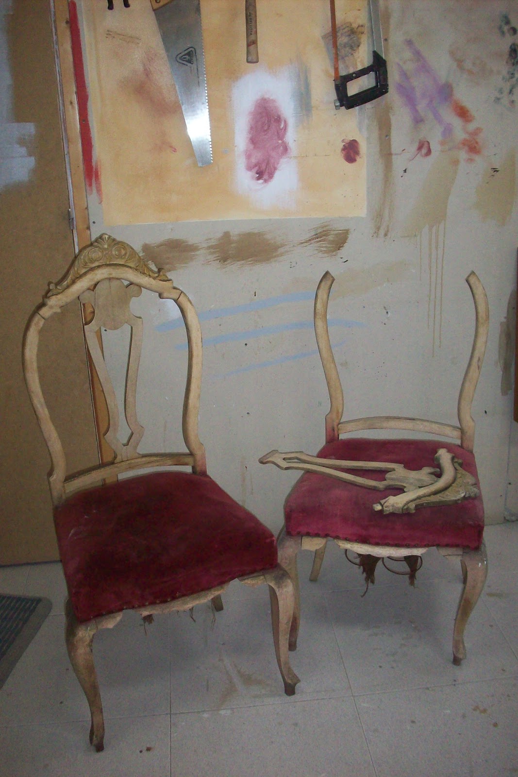Este es el estado en el que se encontraban,la verdad bastante destrozadas,el siguiente reto era igualar la terminación con la de sus sillas,"reto conseguido"...